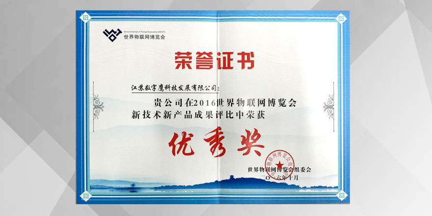 江蘇數字座科技發展有限公司在2016世界物聯網博覽會新技術新產品成果評比中榮獲“優秀獎”。