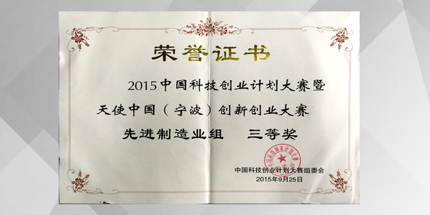 2015在中國科技創業計劃大賽暨天使中國(寧波)創新創業大賽中榮獲先進制造業組三等獎。