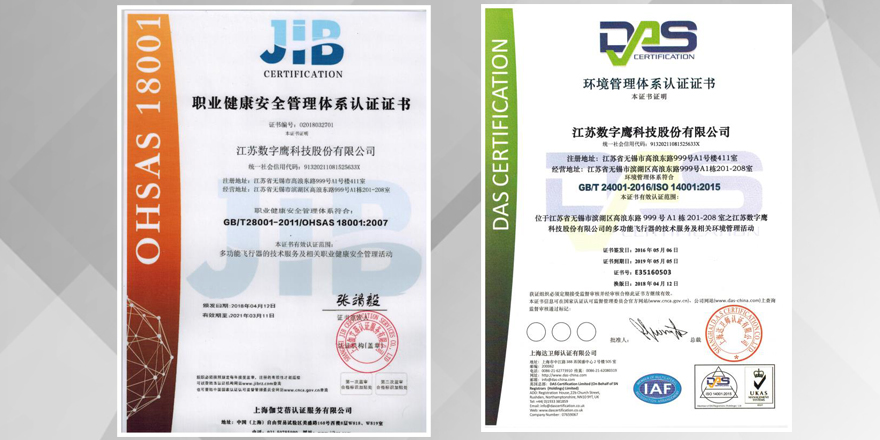 職業健康安全管理體系認證證書、環境管理體系認證證書