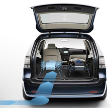 坐在后备箱,说走就走R10的机身在折叠状态下,占用空间大幅缩小,可以非常容易地被放进私家车内随车运输。一般私家车后备箱均可横向并排放置两台R10植保无人机,无需额外购买任何载具车辆,大幅降低了作业成本。