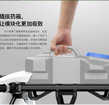 插拔药箱R10采用了高度模块化的结构设计,电池及药箱组件均可任意插拔装卸,减少了两次飞行之间补充电能的时间消耗,亦使补充喷洒液的地点灵活化,无需固定于飞机旁进行喷洒液补给。