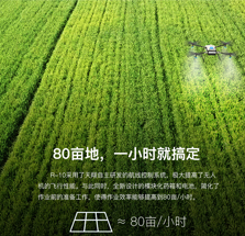 80亩地一小时搞定R-10采用了翔农自主研发的航线控制系统,极大提高了无人机的飞行性能。与此同时,全新设计的模块化药箱和电池,简化了作业前的准备工作,使得作业效率能够提高到80亩/小时。