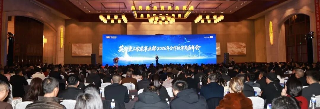 2026年1月4日,英軒重工農裝事業部2026商務年會在青島盛大召開。本次年會以“質啟未來,數智驅動,廠商同頻,共創農機新生態”為主題,匯聚核心經銷商、優質供應商等生態伙伴,更獲中國農業機械工業協會、中國農業機械流通協會、中國農業機械化協會三大行業權威機構集體蒞臨支持。三大協會會長攜核心領導親臨指導,既彰顯行業對英軒重工發展成就與戰略方向的高度認可,更為英軒提供堅實信譽支撐與清晰戰略指引。