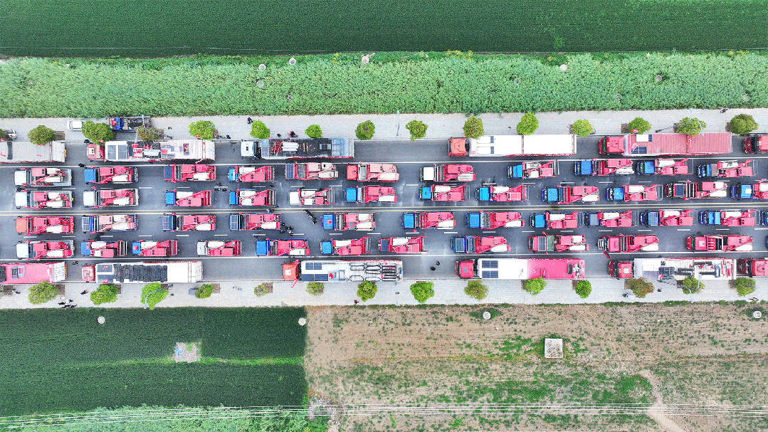 收割機的作業車隊有序出發,“天中麥客”再度奔赴一年一度的豐收之約。