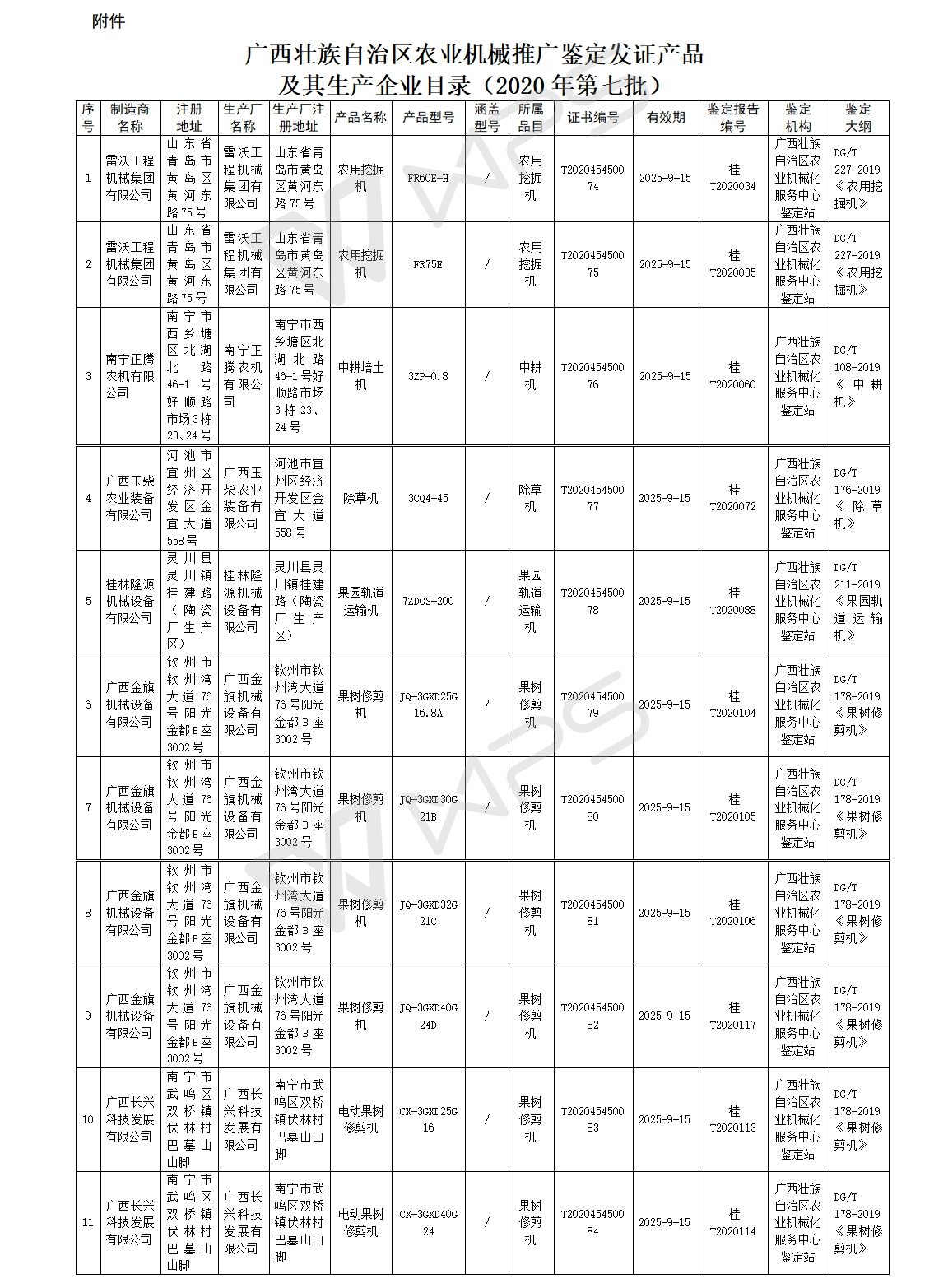 廣西關于2020年第七批農業機械試驗鑒定結果的通報