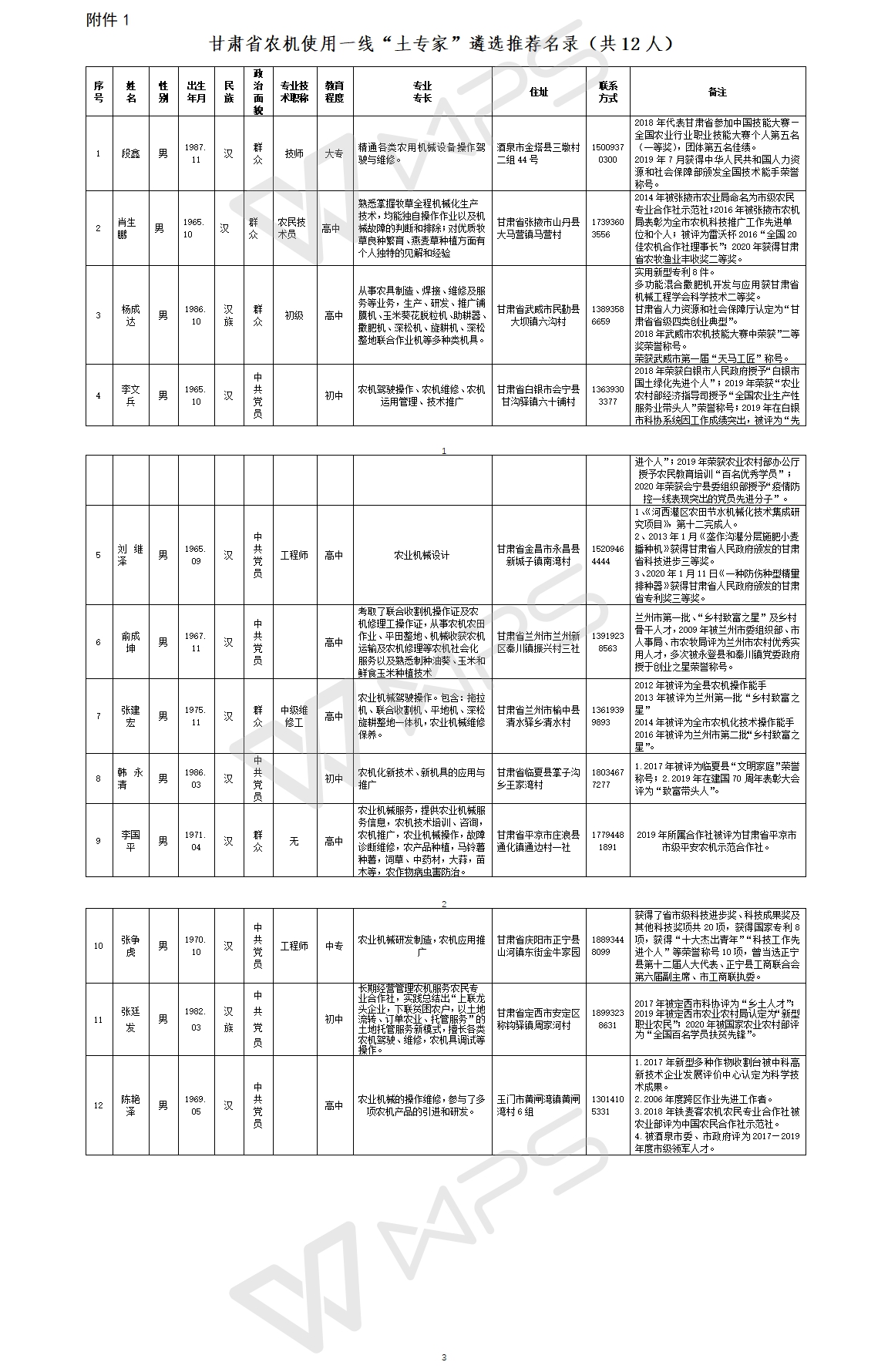 附件:甘肅省農機使用一線“土專家”名錄