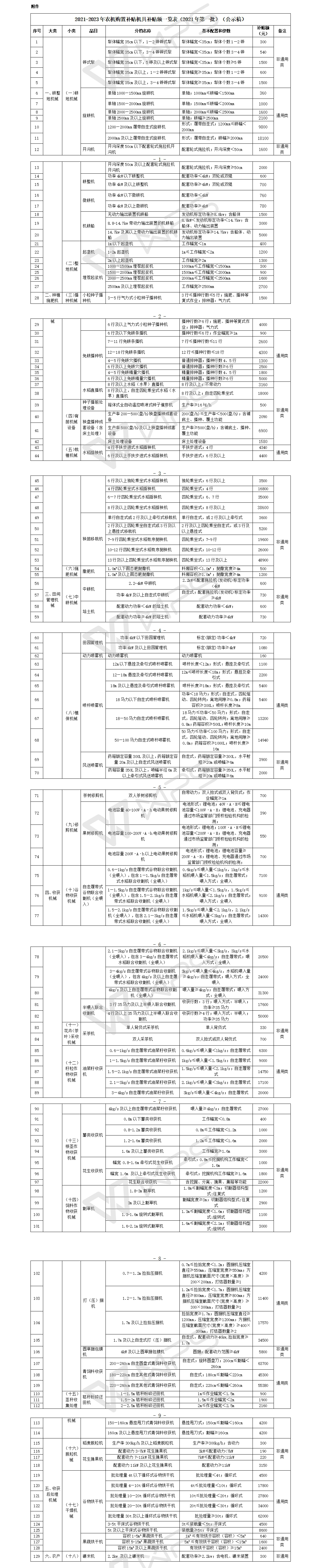 江西省農業農村廳辦公室關于2021-2023年農機購置補貼機具補貼額一覽表(2021年第一批)公示